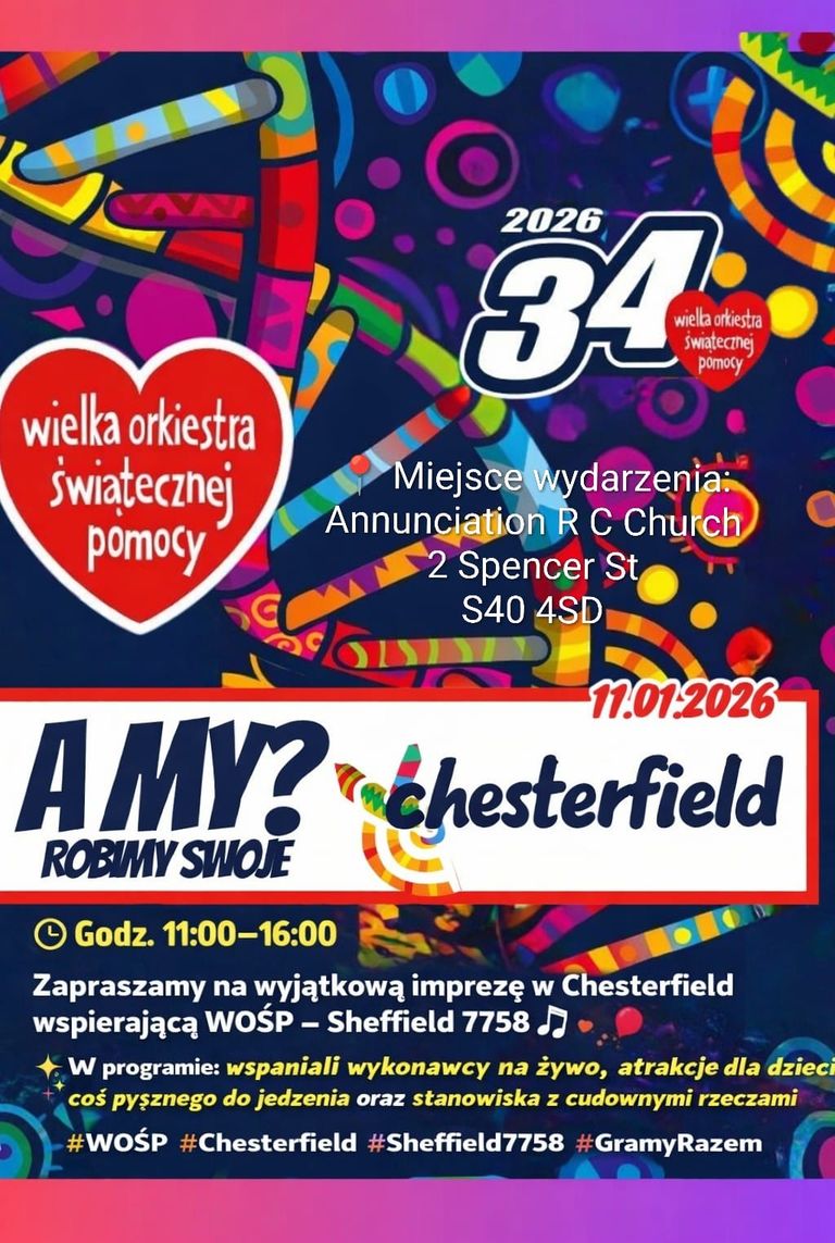 Dziekujemy wszystkim, ktorzy pomogli w organizacji i przeprowadzeniu zbiorki w ramach 34 finalu Wielkiej Orkiestry Swiatecznej Pomocy. Byla to pierwsza taka akcja w Chesterfield!